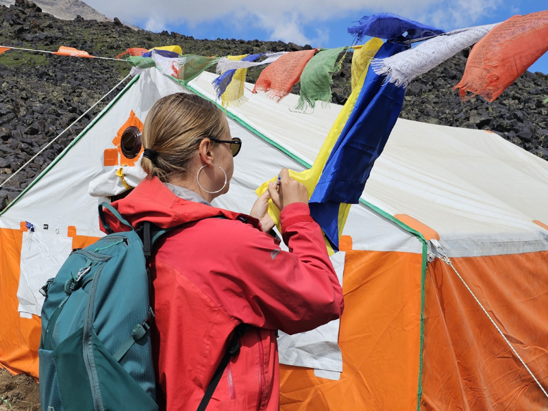 • Щоб організм краще адаптувався до висоти, після сніданку беремо щось куснути та робимо акліматизаційний вихід до 4000 м.